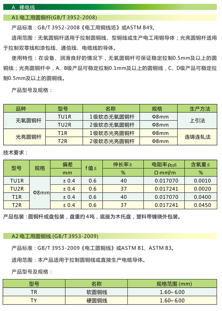 一、產品標準 GB/T3052-2008《電工用銅線坯》