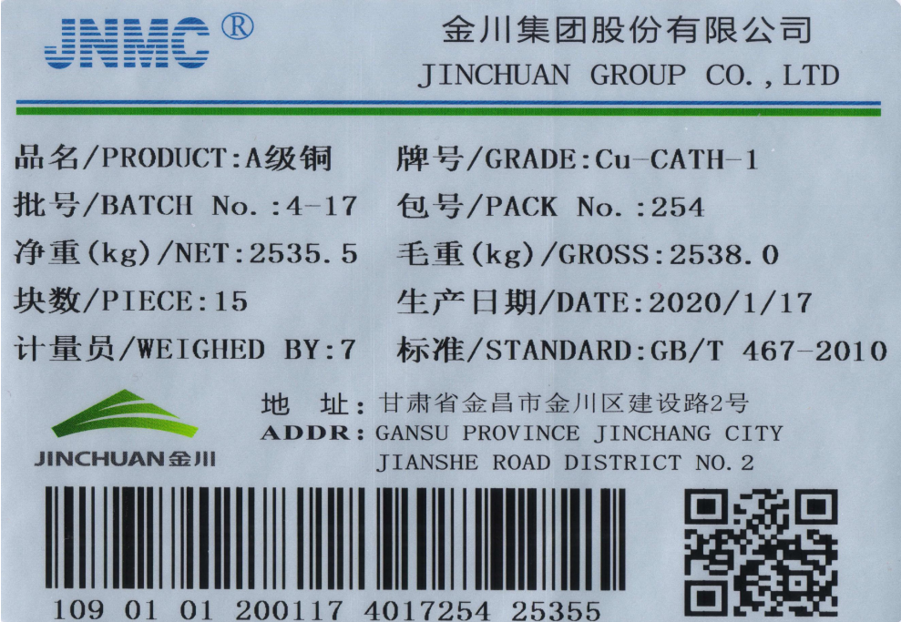金川集團(tuán)兩個A級銅品牌成為上期能源首批國際銅期貨交割商品